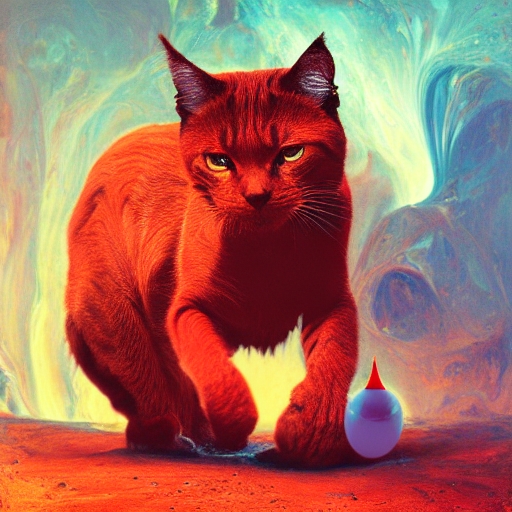 prompt_embeds = compel_proc('("a red cat playing with a ball", "jungle").blend(0.7, 0.8)')