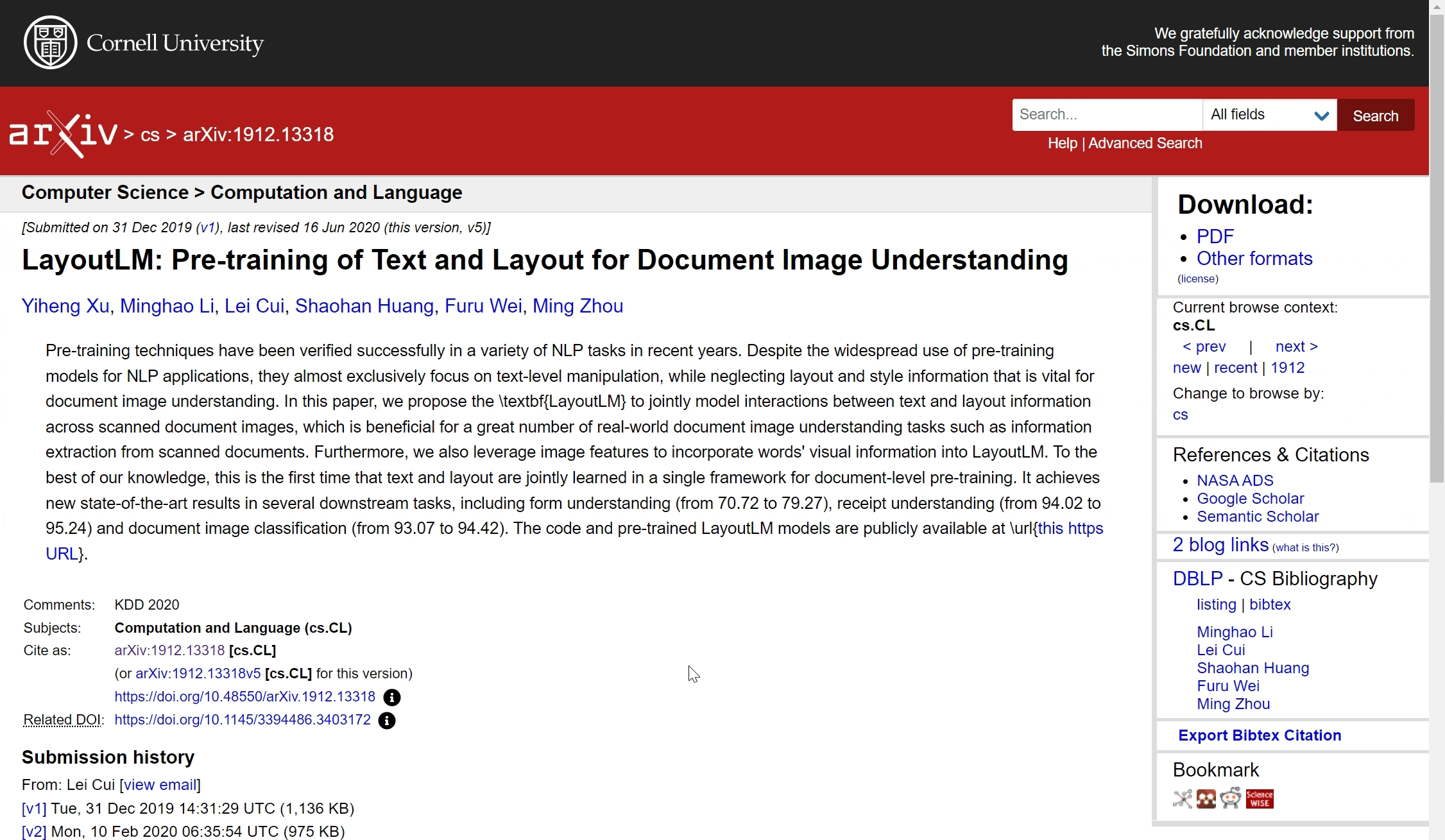 Note: you can verify this step has been carried out successfully by seeing if an ArXiv button appears above the model card. In the case of LayoutLM, the button says: “arxiv:1912.13318” and links to the LayoutLM paper on ArXiv.