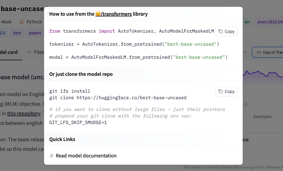 We recommend adding a code snippet to explain how to use a model in your downstream library.