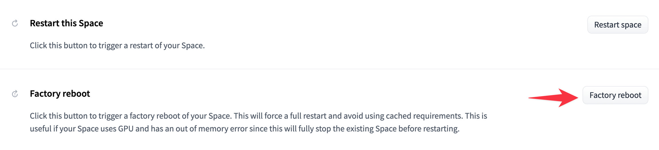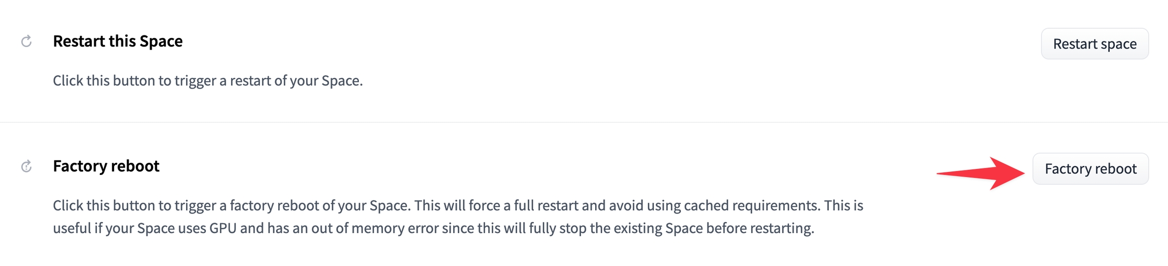 To update Livebook to its latest version, go to the Settings page of your Space and click on “Factory reboot this Space”: