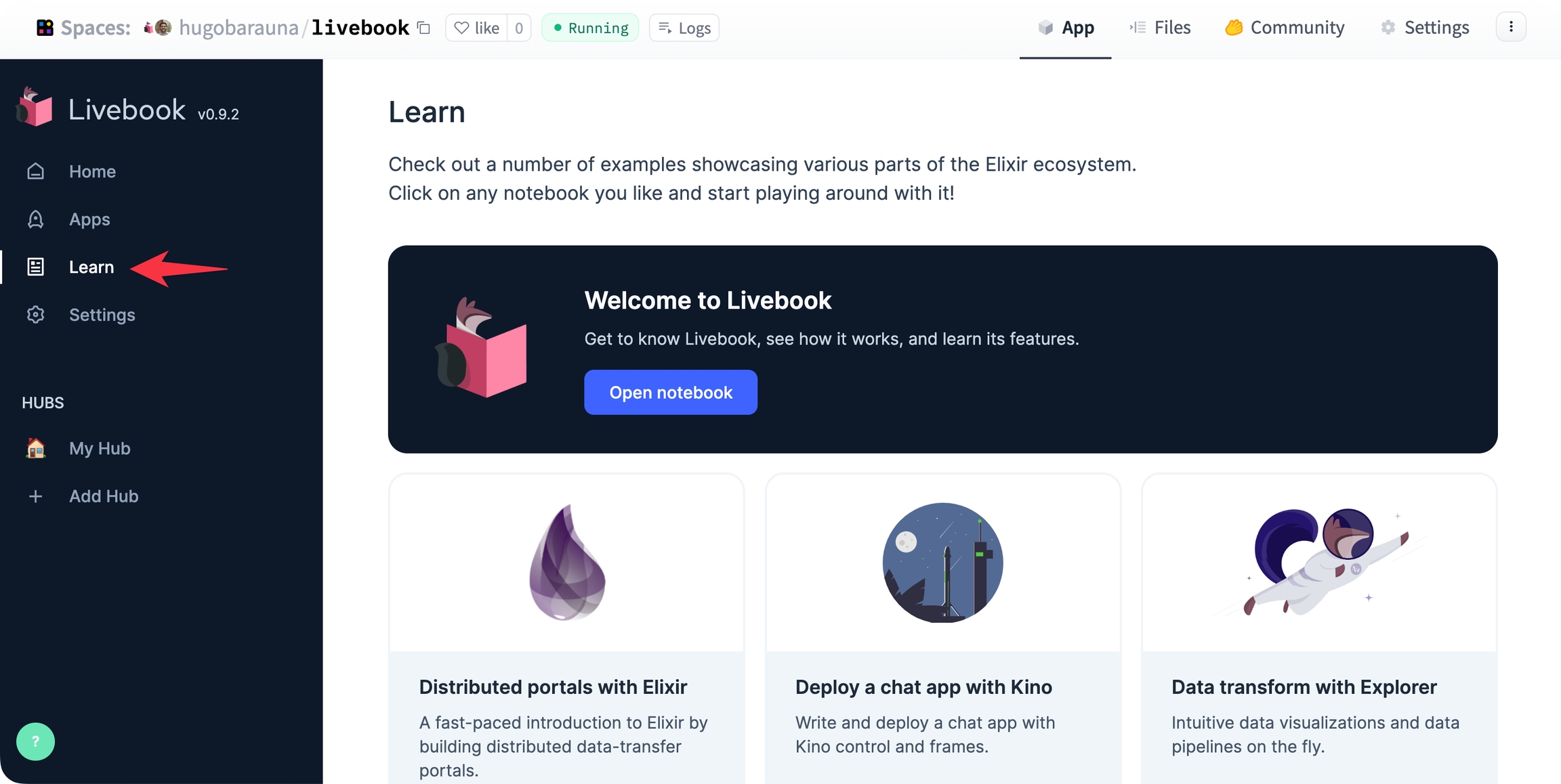If this is your first time using Livebook, you can learn how to use it with its interactive notebooks within Livebook itself:
