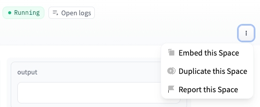 Once your Space is up and running you might wish to embed it in a website or in your blog. Embedding or sharing your Space is a great way to allow your audience to interact with your work and demonstrations without requiring any setup on their side. To embed a Space its visibility needs to be public.