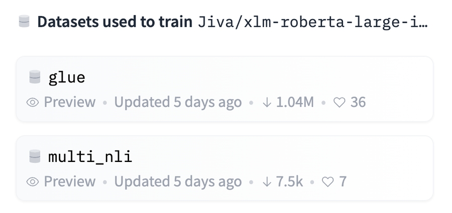 It’s up to the person who uploaded the model to include the training information! You may find the information about the datasets that the model was trained on in the model card. If the datasets used for the model are on the Hub, the uploader may have included them in the model card’s metadata. In that case, the datasets would be linked with a handy card on the right side of the model page: