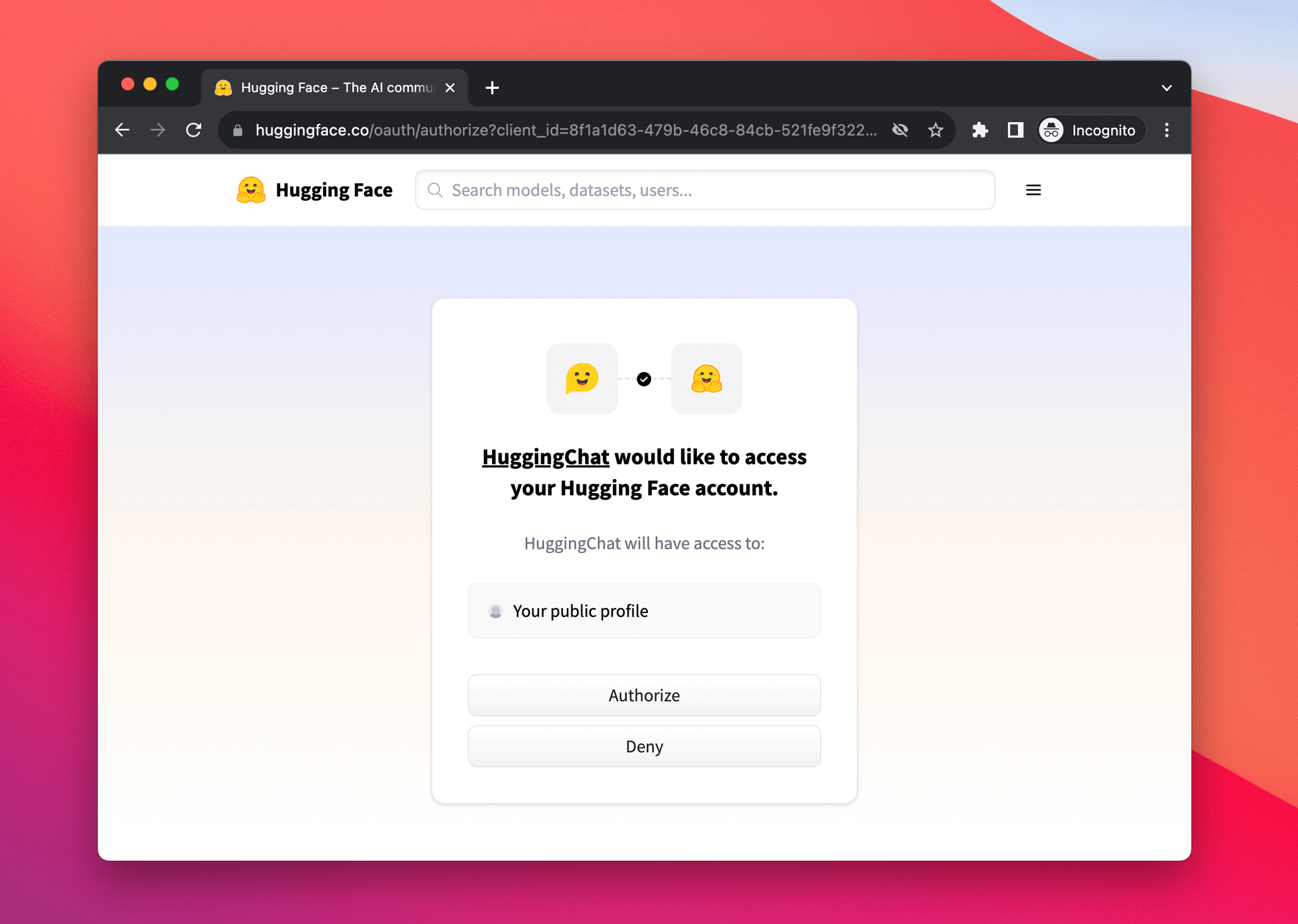 Contact us at website@huggingface.co with the desired name, logo URL, scope, and redirect URLs for the OAuth app. We will provide you with the client ID and client secret.