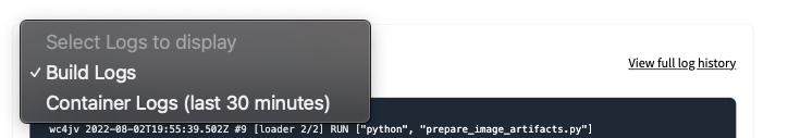 You will have access to the build logs of your Image artifacts as well as access to the Container Logs during inference.
