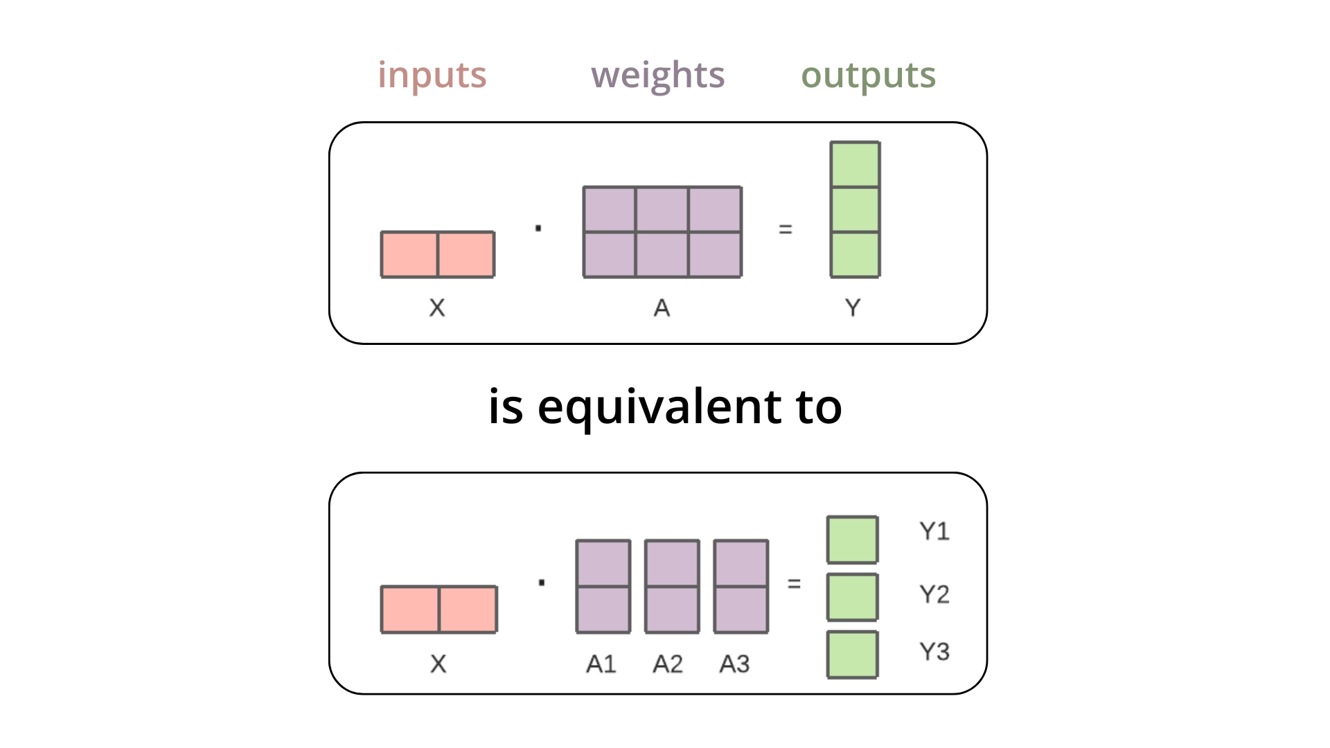 Tensor parallelism is a technique used to fit a large model in multiple GPUs. For example, when multiplying the input tensors with the first weight tensor, the matrix multiplication is equivalent to splitting the weight tensor column-wise, multiplying each column with the input separately, and then concatenating the separate outputs. These outputs are then transferred from the GPUs and concatenated together to get the final result, like below 👇