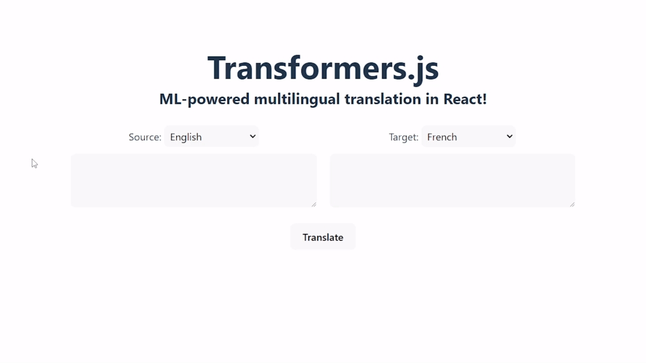 In this tutorial, weβll be building a simple React application that performs multilingual translation using Transformers.js! The final product will look something like this:
