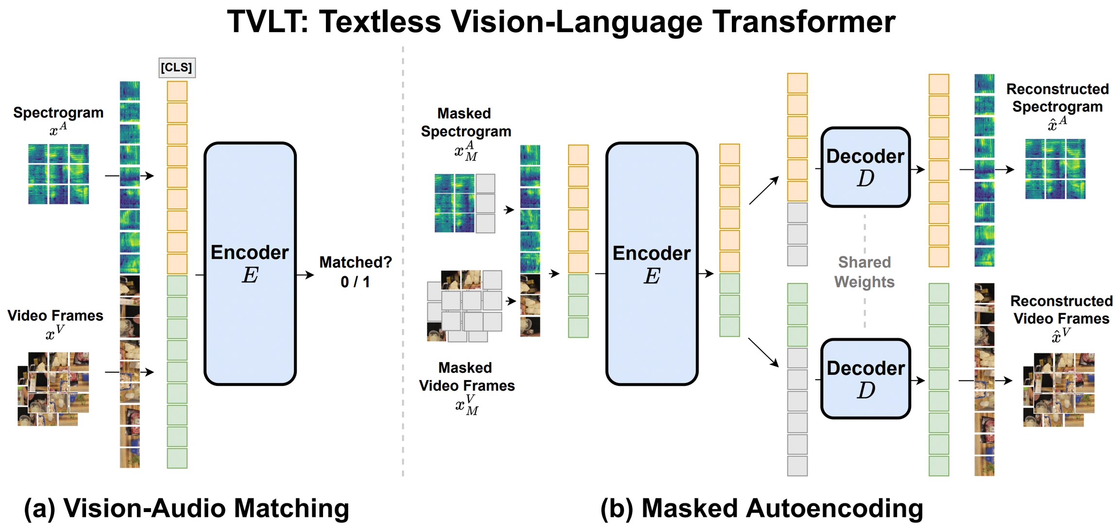 The TVLT model was proposed in TVLT: Textless Vision-Language Transformer by Zineng Tang, Jaemin Cho, Yixin Nie, Mohit Bansal (the first three authors contributed equally). The Textless Vision-Language Transformer (TVLT) is a model that uses raw visual and audio inputs for vision-and-language representation learning, without using text-specific modules such as tokenization or automatic speech recognition (ASR). It can perform various audiovisual and vision-language tasks like retrieval, question answering, etc.