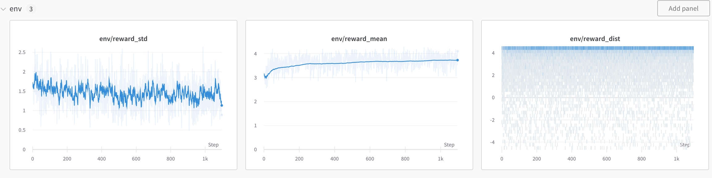 As you can see the model converges nicely, but obviously we don’t observe a very large improvement from the first step, as the original model is not trained to generate toxic contents.