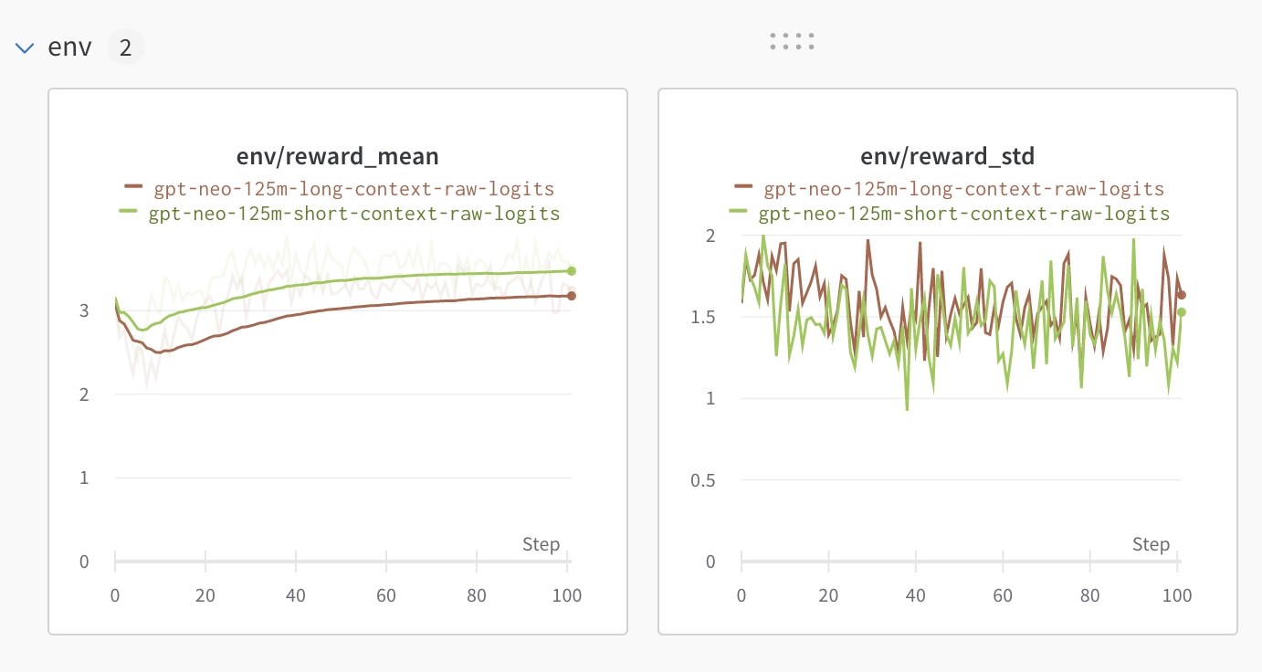 rewards = (logits[:, 0]).tolist()Impact of input prompts length