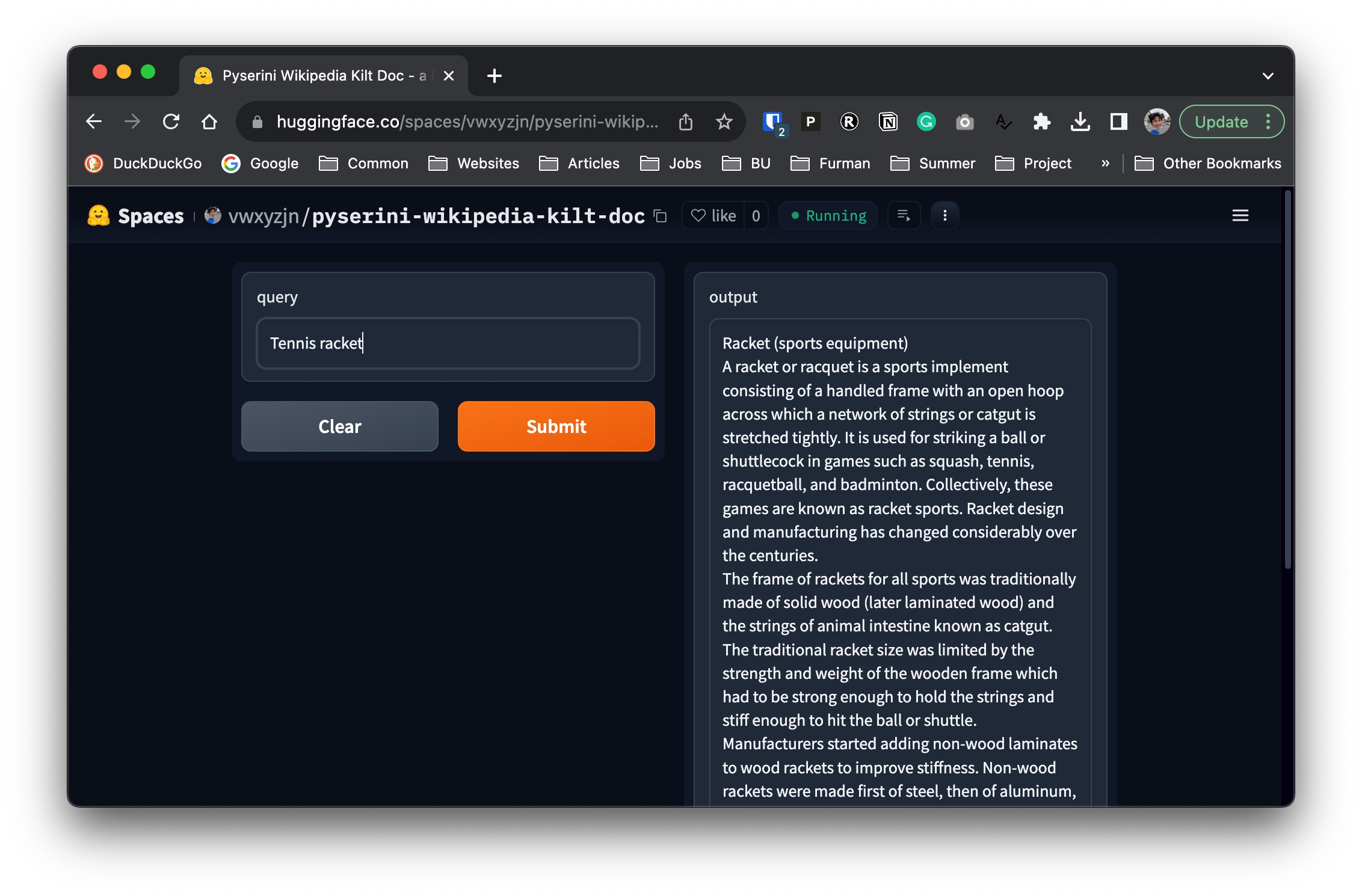 already implements the BM25 retriever and provides a prebuilt index for the KILT Wikipedia dump. We can use the following code to search the index.